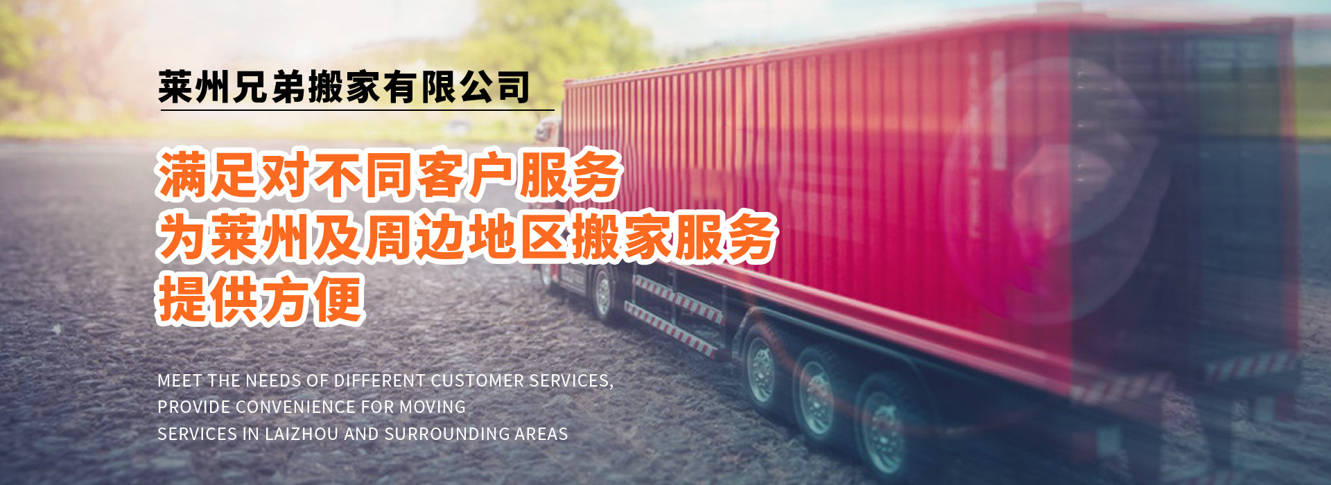 公司備有:廂式貨車、普通貨車、面包車等,滿足對不同客戶服務,為萊州及周邊地區搬家服務,提供方便。曾被廣大客戶評為“專業、專心、用心”的搬家公司。以合理收費為標準,以客戶滿意為服務質量,力作萊州人的好兄弟!您的滿意就是我們的追求!歡迎各企事業單位及個人來電咨詢!